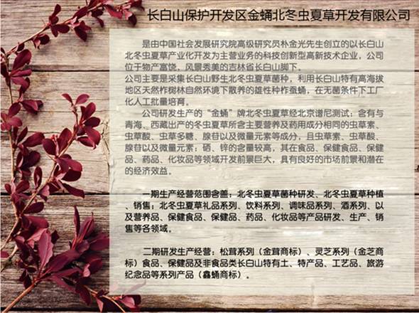 出身于长白山,多年的品质品牌,制度超前领先~人性化~灵活化~共赢化,最佳的切入时机,千载难逢的机遇,天时(时机~10月10启动)~地理(深圳位置可快速辐射珠全国,放眼全球)人和~(分享冬虫夏草健产品~分享合法合理合情长久的事业平台)