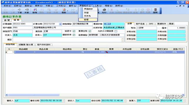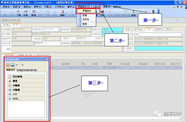 进入系统任意一个输入或查询的界面,可点击下拉菜单界面格式,再点击界面设计(如下图所示)