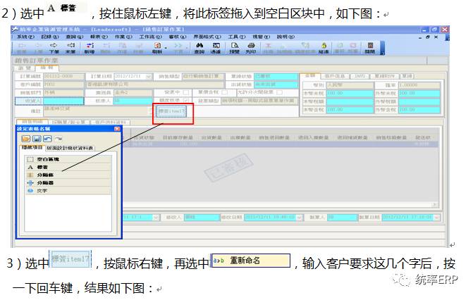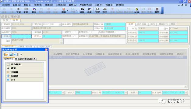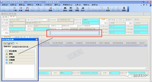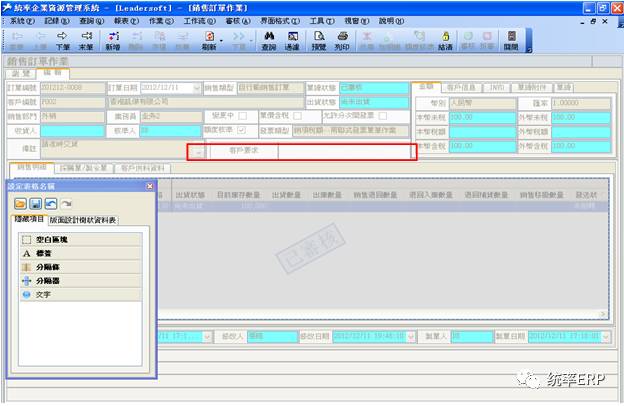 ,按住鼠标左键,将此空白区块拖入到销售订单主表备注后面,如下图: