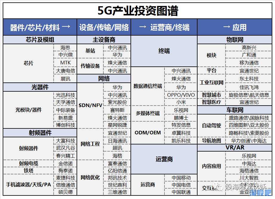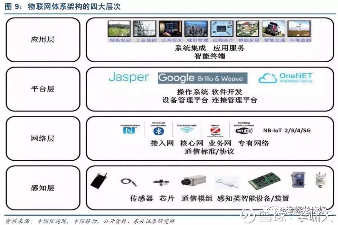 广义上来讲,物联网的网络是指各种通信网与互联网形成的融合网络,包括蜂窝网、局域自组网、专网等,因此涉及到通信设备、通信网络(接入网、核心网业务)、SIM制造等。考虑到物联网很大程度上可以复用现有的电信运营商络(有线宽带网、2/3/4G移动网络等),同时国内基础电信运营商具有垄断特征,是目前国内物联网发展的最重要推动者。而最重要的就是5G。
