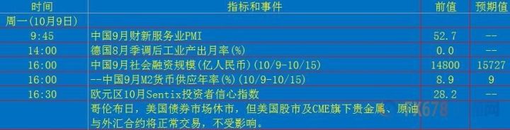周一(10月9日)关键词:中国财新服务业PMI、中国社会融资规模