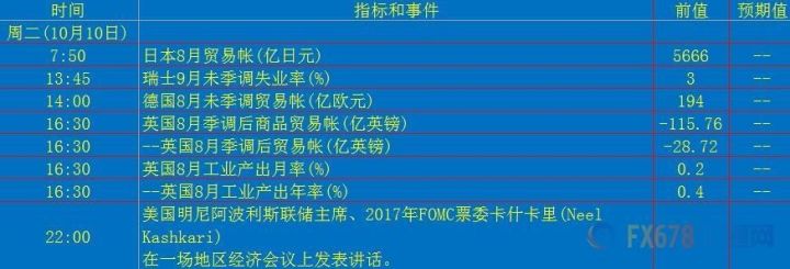 周二(10月10日)关键词:英国贸易帐、英国工业产出、卡什卡里