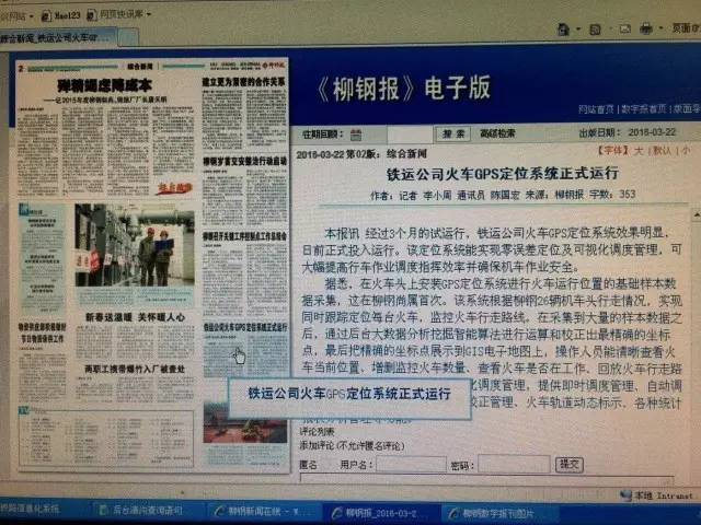 32016年3月22日,柳钢集团《柳钢报》报道,高精度零误差可视化火车定位调度系统经过3个月的试运行效果显著,并正式投入生产应用。