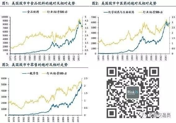 食品(图1)、医药(图2)、零售(图3)等行业是美国股市中穿越牛熊的长跑冠军