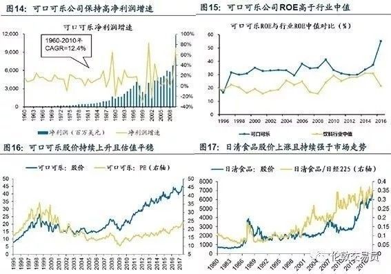 经过大浪淘沙,可口可乐(图14-16)、强生医药、日本花王、日清食品(图17)等消费龙头强者恒强,在资本市场受到众多价值投资者的青睐,股价长牛。