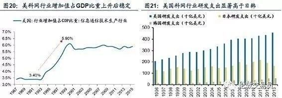 自克林顿于1993年推行“信息高速公路计划”之后,科技行业成为美国经济的重要引擎,也在全球确立了绝对领先地位。
