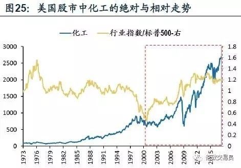同为优势产业的化工业, 90年代以来其股价更是一路攀升 (图37)。