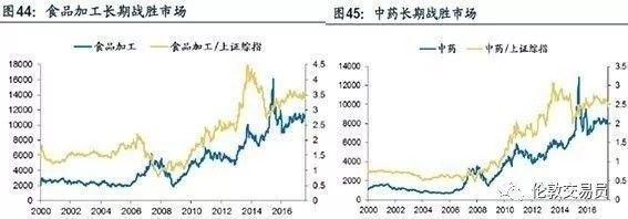 传统消费行业在A股同样有着优异的长牛表现 (图44、45),不过也多为机构重仓股。