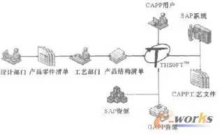 即一个应用功能可以调用另一个应用功能,实现以数据为基础、业务为核心的信息系统。在性价比差异不大、功能能满足需求的情况下。能用一个系统管理的,尽可能用一个系统管理,这样可以减少数据的接日,当数据接1:2越多,数据的一致性和同步程度就越难以达到管理的要求,也使系统的复杂度大为增加。图2为CAPP和ERP的数据接口示意图。
