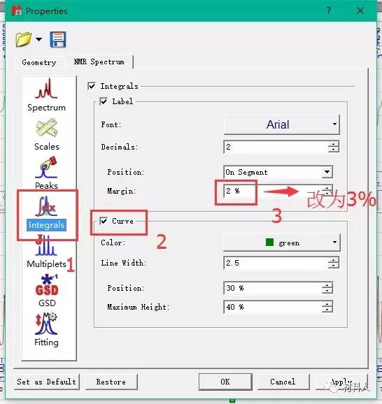 选择第4个选项卡,如图所示,将“Curve”勾选掉,去掉曲线;将2%改为3%,将积分上移。