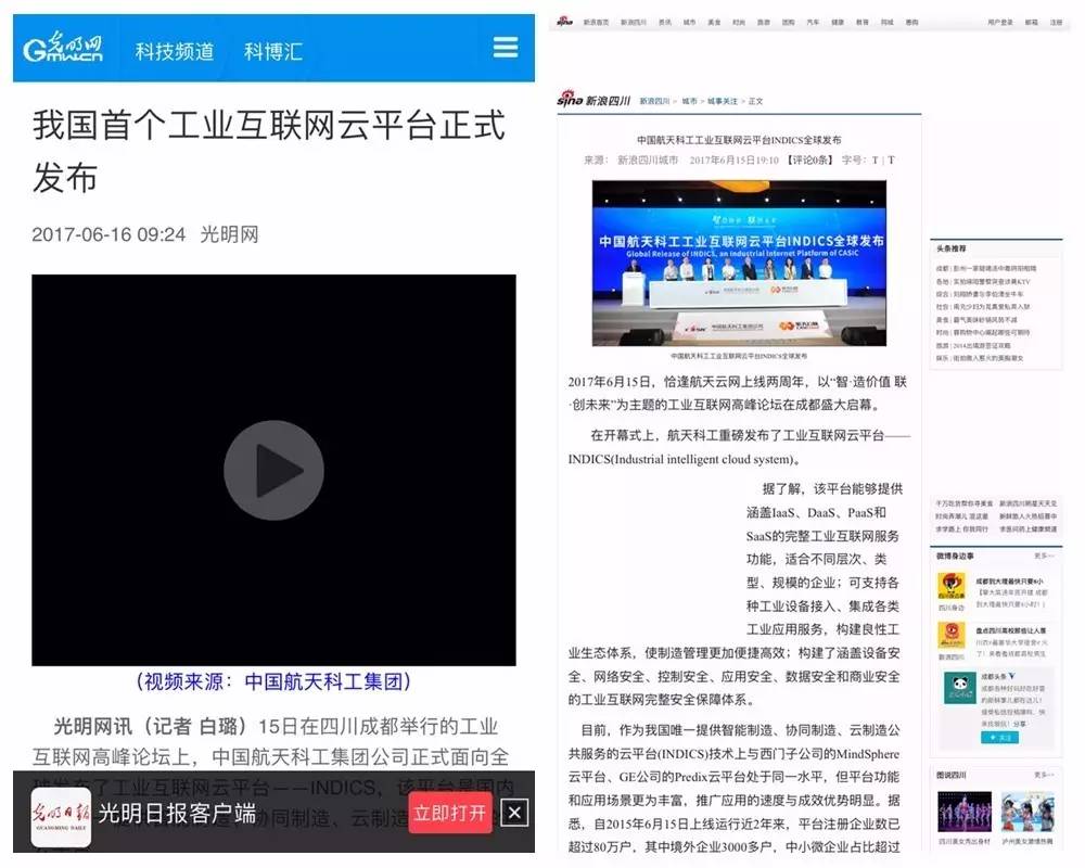 6月15日在成都举办的工业互联网高峰论坛上,中国航天科工面向全球发布了中国首个工业互联网云平台INDICS,这一消息引起各大媒体集体刷屏!