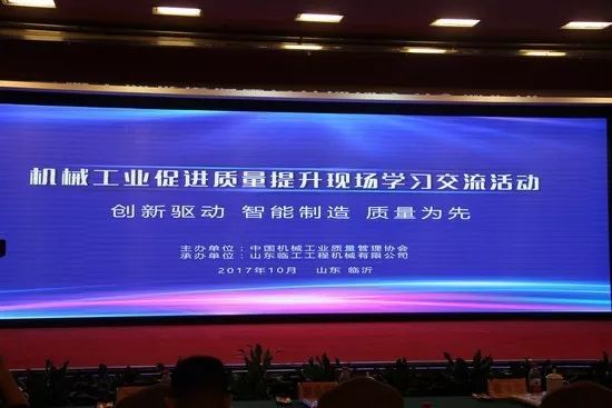 2017年10月20日,由中国机械工业质量管理协会主办,山东临工工程机械有限公司承办,主题为“创新驱动,智能制造,质量为先”的机械工业促进质量提升现场学习交流活动在山东临沂隆重举行。与会领导分别致辞,并安排了专家讲座以及临工车间参观等活动。