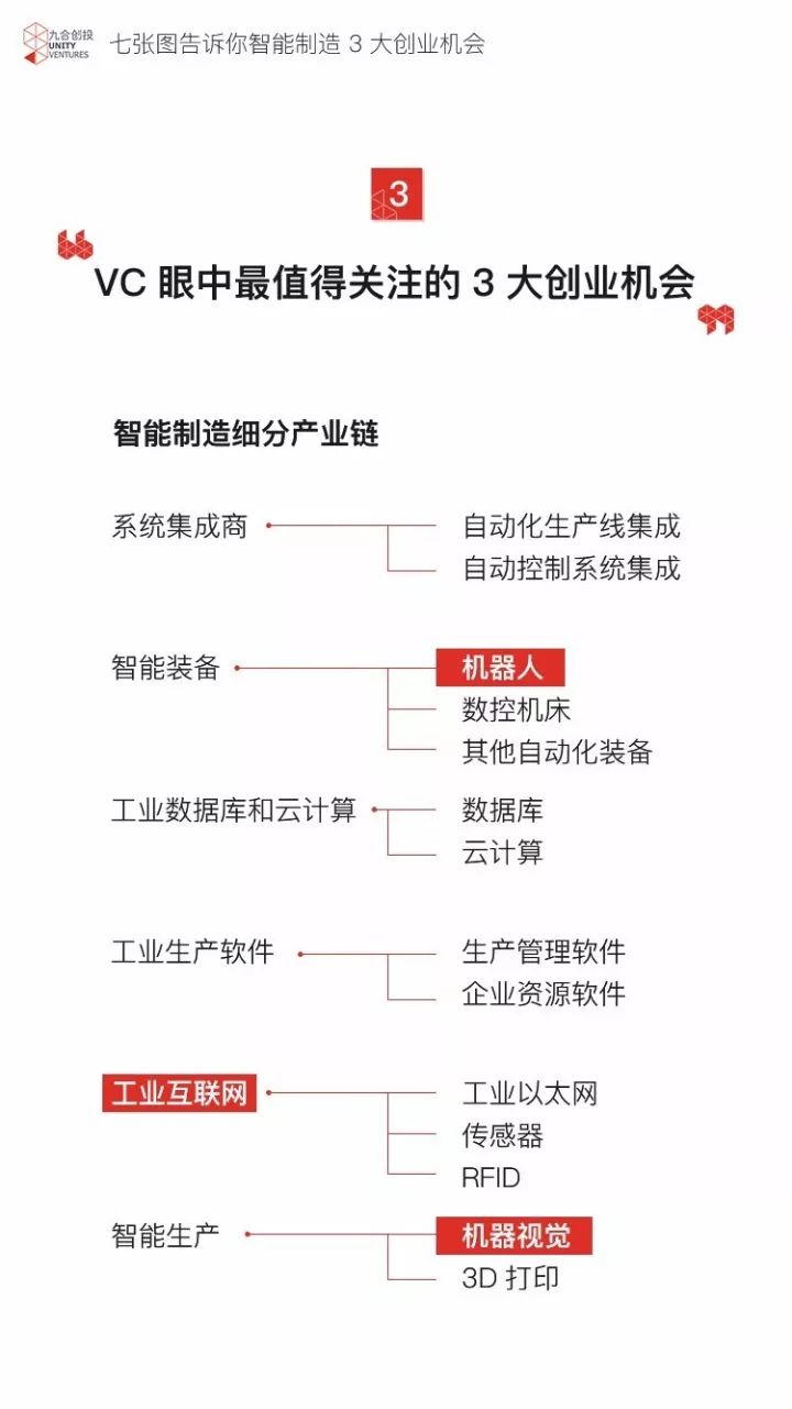我们将用 7 张图为你描绘出“智能制造”领域目前的概况:为什么现在是VC 和 创业者进入的最好时机 ?智能制造产业链中 VC 目前最关注的 3 大创业机会有哪些?创业公司目前成长为跨行业巨头的机会还是否存在?