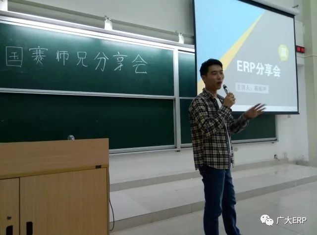 于是,在广州大学大学城校区理科北306,ERP协会请来了有丰富参赛经验的陈振声师兄给各位参赛者分享比赛经验,解决疑惑。