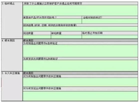 8D格式的原则上针对出现的问题,找出问题产生的根本原因,提出短期,中期和长期对策并采取相应行动措施;