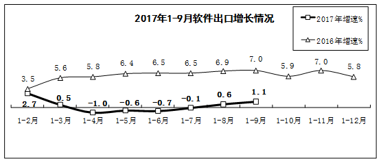 出口小幅增长,扭转上半年负增长态势。前三季度,软件业实现出口370亿美元,同比增长1.1%,比上半年提高1.8个百分点;其中,9月份增长5.2%,比7、8月分别提高2.1和0.1个百分点。前三季度,外包服务出口增长5.9%,增速比上半年提高2个百分点;嵌入式系统软件出口下降1%。