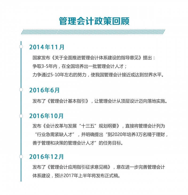 16年10月,我国会计权威机构发布《会计改革与发展“十三五”规划纲要》,直接将管理会计列为“????????行业急需紧缺人才”,并明确提出“到2020年培养3万名精于理财,善于管理和决策的管理会计人才”的任务目标。