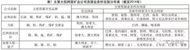 大型跨国矿业公司在发展的早期阶段,由于开采技术和资金的限制,大多实行单矿种专业化、本土化的经营模式。但在资金和生产规模积累到一定程度之后,伴随着业务领域横向和纵向的不断扩张,国际知名矿业公司纷纷走出国门开展全球化经营。