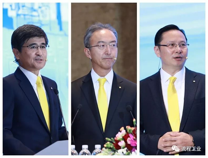 (从左至右)横河电机株式会社总裁及首席执行官西岛刚志先生,横河电机株式会社董事及执行副总黑须聪先生,横河电机株式会社副总裁兼亚太(及中国)首席执行官戴煜先生,分别介绍了横河电机的历史、技术产品和其在中国市场的发展。