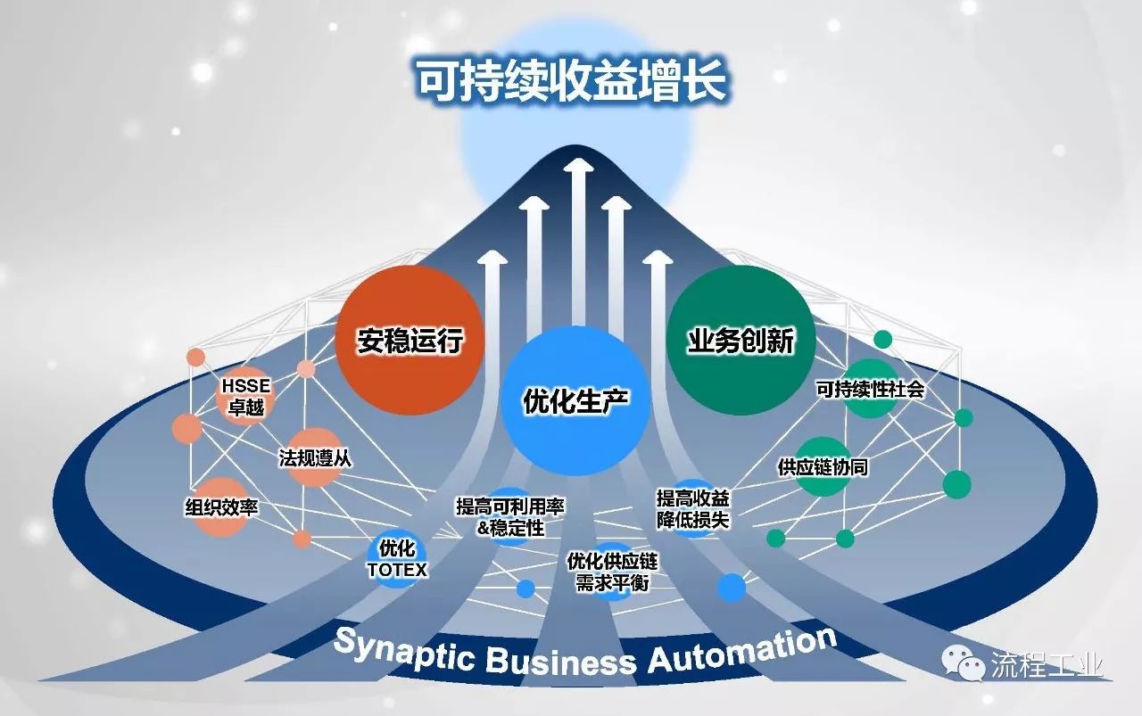 触连业务自动化概念的名称源于神经系统中的突触结构,其作用是将信号传递到人体的其他部位。触连业务自动化表现了企业的一种理想状态,它通过融合数据、系统、组织、知识和供应链而增加价值和提升竞争力。可以对制造流程、工厂运营、人力资源和供应链的关联数据进行组织、整合、控制、分解和分析,从而在现场运营到企业管理的各个层面形成有洞察力的决策。