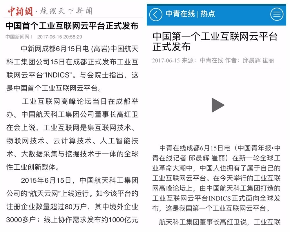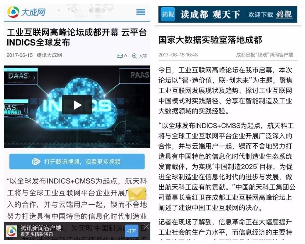 6月15日在成都举办的工业互联网高峰论坛上,中国航天科工面向全球发布了中国首个工业互联网云平台INDICS,这一消息引起各大媒体集体刷屏!