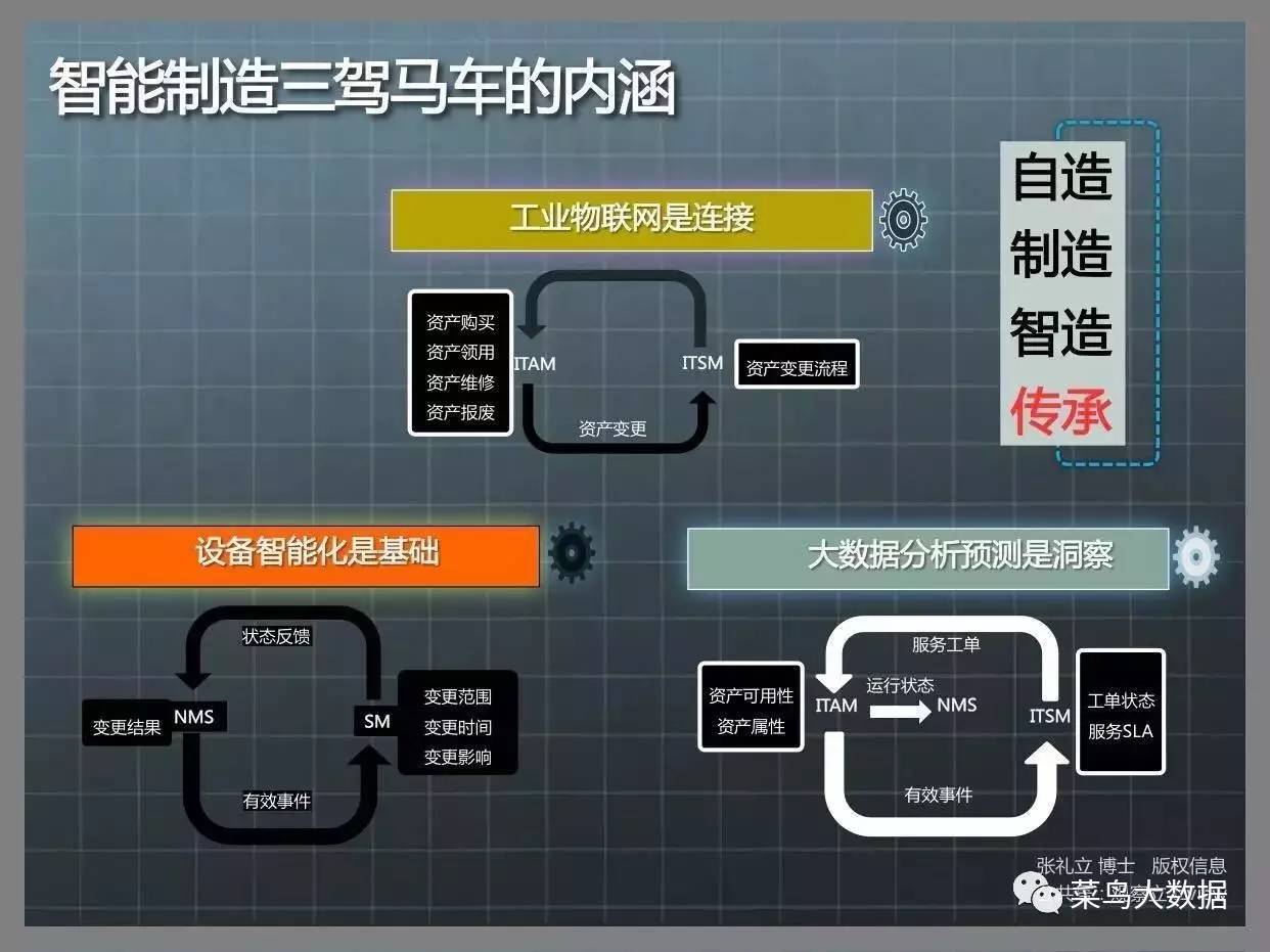 下面我们请互联网大咖 张礼立博士来谈谈智能制造的三驾马车。