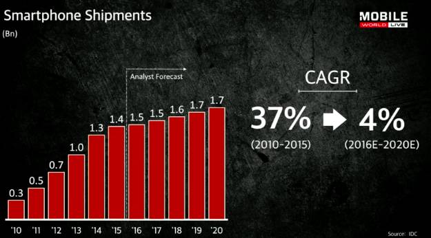 不过,未来5年,智能手机的CAGR只有4%。这让人非常沮丧,不是吗?
