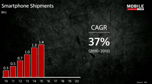 1 运营商市场令人沮丧过去5年,智能手机的复合年均增长率(CAGR)为37%。