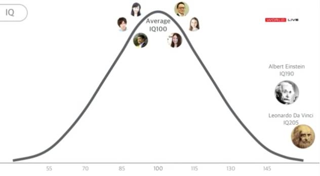 当我们在讨论大脑的能力之时,我们通常会用IQ来衡量。普通人的IQ是100,爱因斯坦、达芬奇这样的天才的IQ大概在200左右。假如你的IQ达到200,你也就是天才,我不知道在座的各位有多少人的IQ达到了200(笑)。不管怎样,IQ为200的是天才,100的是普通人,相信在座各位的IQ都高于100(笑)。