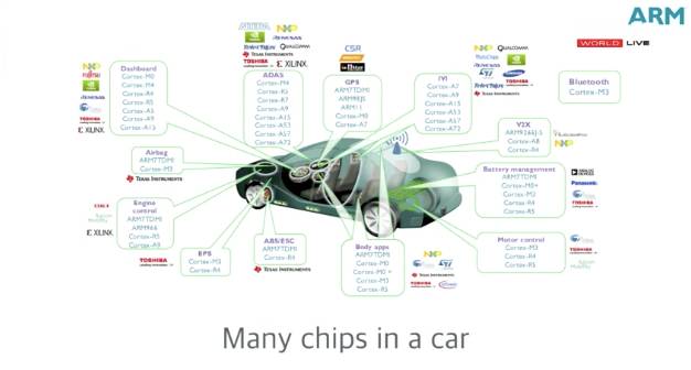 今天,一辆汽车里有约500块ARM的芯片,注意,是现在,就是今天路上的新车。我要说的是,没有一块芯片是安全的。我敢这样说,是因为这些芯片都是我们的(笑)。非常危险啊,同志们!