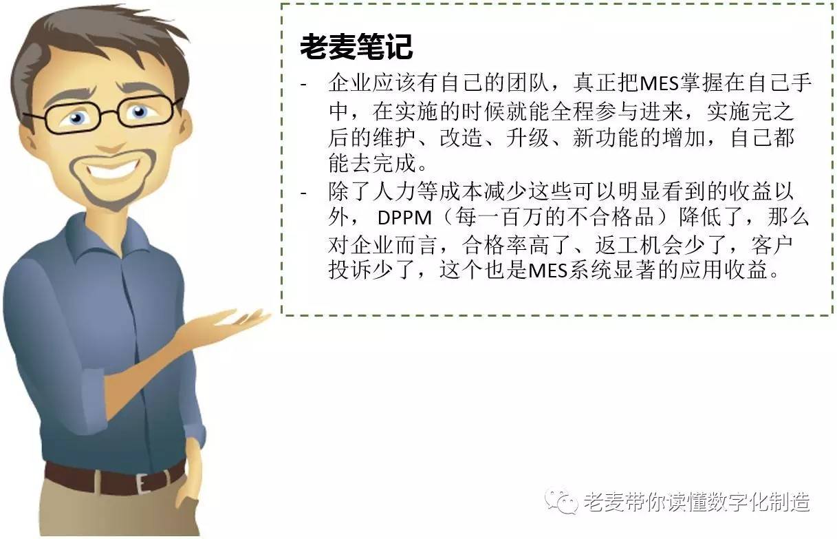 M公司是做柔性电路板的公司,它的生产特点是贯穿了柔性电路板和后面的SMT以及Assembling的制程。这个工厂原先的系统,基本上是在生产的时候追溯在制品的分布、交付,是报工用的,也就是说产线生产多少件,之后去系统里报一下工,报到ERP里面去,它只是ERP的数据采集器。这样的系统肯定不能满足客户的要求,所以客户选择更换自己的系统。客户期待一个平台,能同时覆盖柔性电路面板的生产,加上SMT这一块,希望用一个系统解决两个完全不同的业务问题。此外,因为产品的一些原因,所以对追溯性的要求非常高。因为该产品的特性,产品不能贴条码。当时设计这套系统的时候,比较头疼的地方是怎么样建立一个模型,能把他的这些要求从批次追溯到载记追溯到单件追溯都能实现。那么针对一些追溯性要求比较高的客户,我们就按单件追溯。当然从终极目标来说的话,如果都能做到单件追溯客户当然也是希望的,但单件追溯就意味着过程当中会有一些人力的投入,相对来说是损失工时的。当时就设计了这样一个架构,就是同时支持追溯批次的载记以及单件的追溯,而且是要把柔板以及SMT这两个系统架构在一起。在实施过程中,在人员的投入上,初期请了很多外部人员,并且经常,这导致我们尤其是在交接这些方面碰到了一些比较大的问题。后续他们培养了自己的IT团队,所以到了后面持续的维护升级,大家配合得就好一些。所以从MES的角度来讲,企业应该有自己的团队,真正把MES掌握在自己手中,在实施的时候就能全程参与进来,实施完之后的维护、改造、升级、新功能的增加,自己都能去完成。这个项目做到后面感触比较大的是,他们IT这一块自己慢慢地可以改很多东西、做很多东西,都不需要我们去解决。很多时候只需给我们一个电话、一个邮件,问一些问题,他自己就能去做维护。从一开始的很复杂的架构,到后面他自己做维护改造,我对这一点印象比较深一些。M公司这边后来自己做了一个ROI的分析,因为M公司是一个美资企业,每投资一笔钱都要看到回报、回报了多少,最后从数据上可以看到效率、设备利用率方面得到提高,纸张成本、人力成本大幅度地减少。所以通常开始的时候你要设立一个期望,我们在项目结束以后会根据这个期望做一个打分,看看到底完成了多少。但有些东西并不是说完全靠系统就能解决的,有些是管理、人员安排方面的,管理方面要解决的问题,要管理结合系统。上一套系统除了人力等成本减少这些可以明显看到的收益以外,DPPM(每一百万的不合格品)降低了,那么对企业而言,合格率高了、返工机会少了,客户投诉少了,这个也是MES系统显著的应用收益。这个项目主要的起因还是因为客户的稽核要求,迫使他废掉了原来的系统。因为原来的系统基本上不能满足客户的稽核要求,他(原来的系统)基本上只是数量的报工,没有物料的管理、质量的管理,这个案例就体现了优质客户对于管理上的要求驱动供应商采用MES系统的情况。