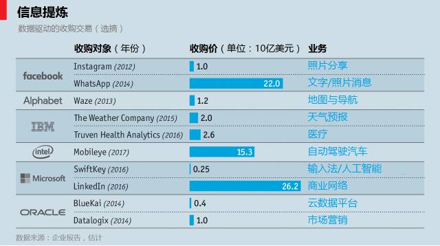 跟石油市场一样,大型数据公司不断地兼并小公司(见下表)。但数据经济还有令“黑色黄金”交易者们颇感陌生的一面。按价值计算,石油是世界上交易量最大的大宗商品。