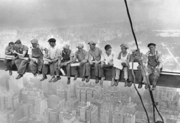 (曾经“努力”的美国工人在帝国大厦的钢梁上悬空100多米吃午餐)