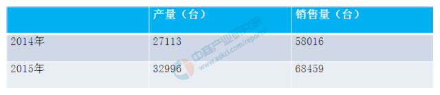 目前国内除了少数以组装为主的中日合资的机器人公司外,具有自主知识产权的工业机器人尚停留在高校或科研单位组织的零星生产,未能形成气候。因此,我国工业机器人生产能力较国外成熟国家还有很大的差距,不过这种差距随着我国技术的发展正在不断缩小。2015年,中国工业机器人产量为3.3万台,同比增长21.7%;销售量为6.8万台,同比增长18%。