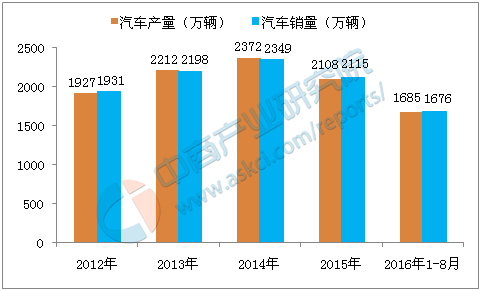 近年来,我国汽车行业总体上呈现快速发展的态势,据中国汽车工业协会统计,2015年,汽车产销量分别为2107.94万辆和2114.63万辆,比上年分别增长5.8%和7.3%。2016年1-8月汽车产销1684.59万辆和1675.50万辆,同比增长10.82%和11.43%。