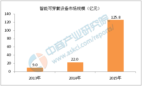 可穿戴设备即直接穿在身上,或是整合到用户的衣服或配件的一种便携式设备,是综合运用各类识别、传感、连接和云服务等交互及储存技术,以代替手持设备或其他器械,实现用户交互、生活娱乐、人体监测等功能的新型日常穿戴设备(眼镜、手表、腕带等)。可穿戴设备行业近年处于高速增长势,2015年中国智能可穿戴设备市场规模为125.8亿元,增速高达471.8%。