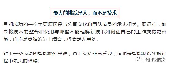 关于智能制造的一个常见误解是,它将要求组织机构彻底改变他们目前的业务,投资先进的技术。而这些技术往往太复杂企业无法适应。一些改变是必要的,但实际上智能制造通过建立在制造商当前的能力基础上,大大简化了这一转变。