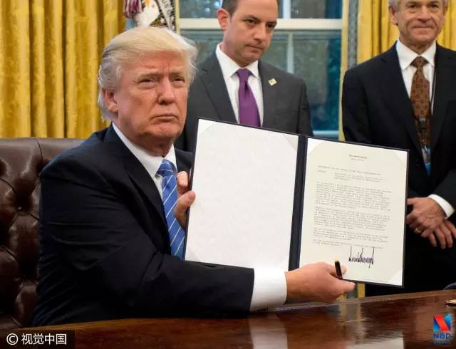 ▲特朗普签署行政命令 宣布美国退出TPP(图片来源:视觉中国)