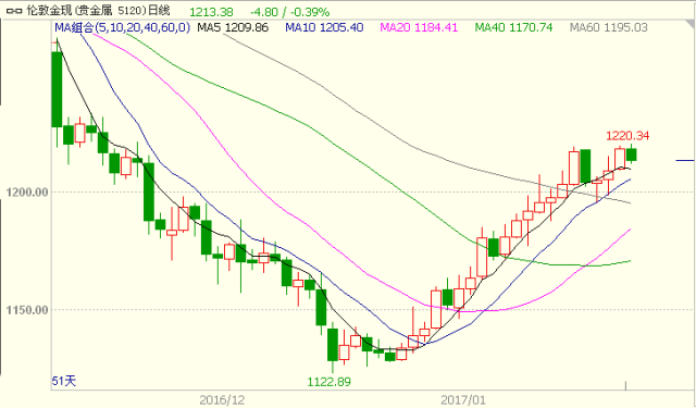去年12月下旬以来,伦敦金见底反弹,见下图。