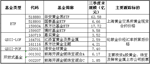 ▼黄金类基金一览: