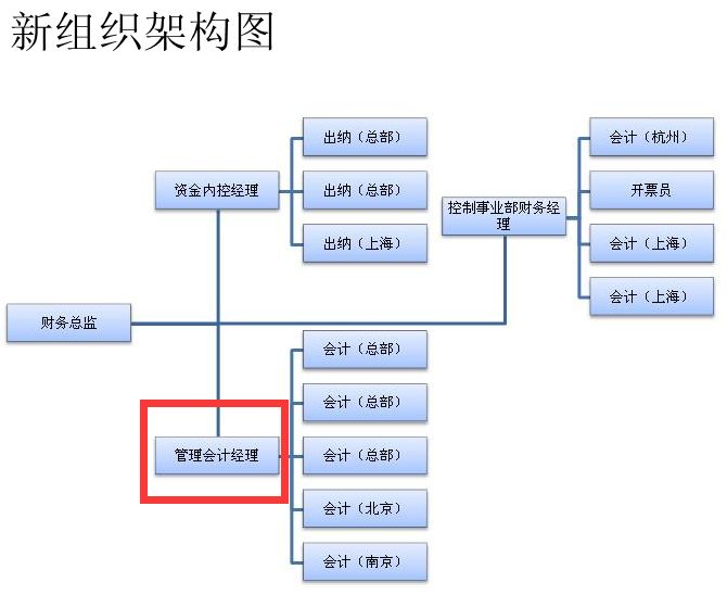 2、财务本部改为管理会计部,新招聘一名会计业务能力强的财务经理,加强会计报表、预算、财务分析的能力。