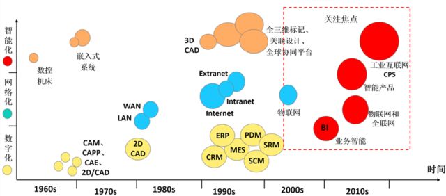 企业智能化的发展,可以回溯到上个世纪六十年代初。通过图2的制造业智能化发展,可以看到制造业如何从数字化走到网络化,再走到智能化。