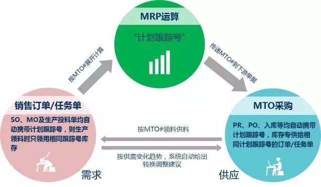 专料专用的三种实现方式:锁库、锁单、加计划跟踪号( MTO# )。MRP计划运算,自动给出MTS→MTO的调整建议,可快速实现批量调整,实现柔性化。