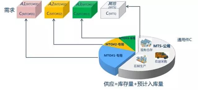 不带有MTO#计划跟踪号的MTS库存量/预计入库量,无计划跟踪号,视为通用公用料,可供应给所有需求(包括MTO需求),来单即分配、谁需谁占用。