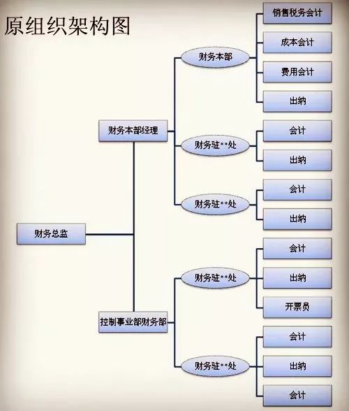 原来的(未调整之前)结构,是分散型财务管理组织,集团总部设置了两个经理,名称不同,但各自管理的事情比较接近。在这种设置下,同级别的主管、经理从事的工作差不多,在经理层,都要对所管辖的会计主体进行全面管理,对经理和主管的要求比较全面全面,换句话说,他们不易/不能做到有专攻、有专长,练出来的是全能型选手。