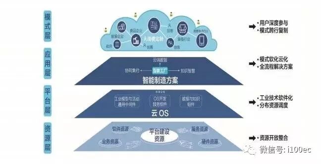 COSMOPlat平台共分为四层:第一层是资源层,开放聚合全球资源,实现各类资源的分布式调度和最优匹配。第二层是平台层,支持工业应用的快速开发、部署、运行、集成,实现工业技术软件化。第三层是应用层,为企业提供具体互联工厂应用服务,形成全流程的应用解决方案。第四层是模式层,依托互联工厂应用服务实现模式创新和资源共享。