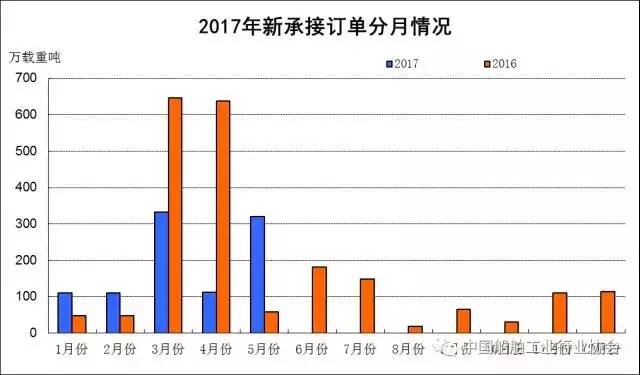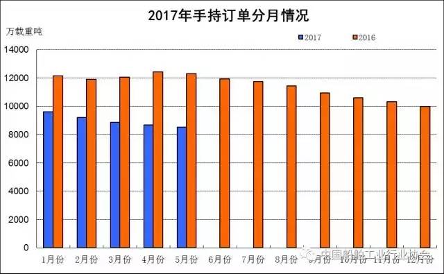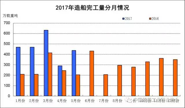 2017年1~5月,我国造船完工量继续保持增长,新承接订单和手持船舶订单量同比下降,重点监测企业主要经济指标降幅有所收窄。
