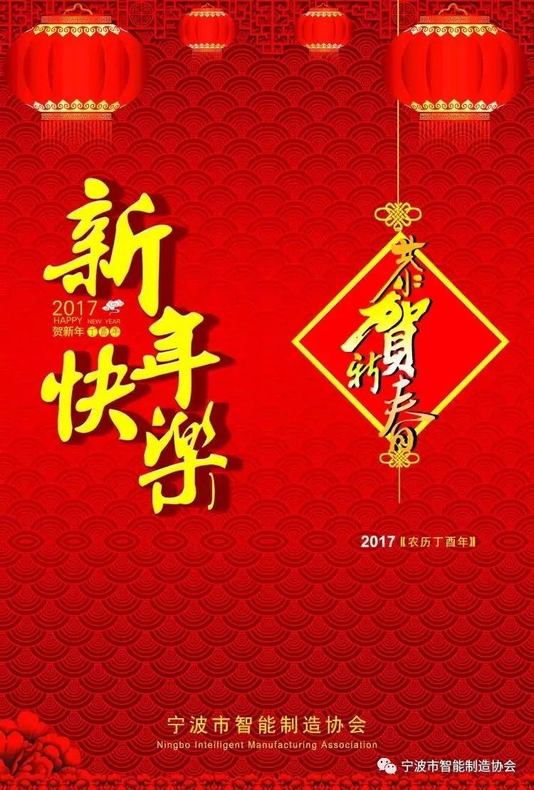扬起快乐的风帆,挺进鸡年温暖的港湾。奏响梦想的号角,驶入鸡年幸福的殿堂。聆听春风的歌声,描绘鸡年灿烂的画卷。触摸心灵的颤动,传递鸡年温暖的祝福。宁波市智能制造协会愿您:鸡年快乐幸福,身体健康,财源广进!