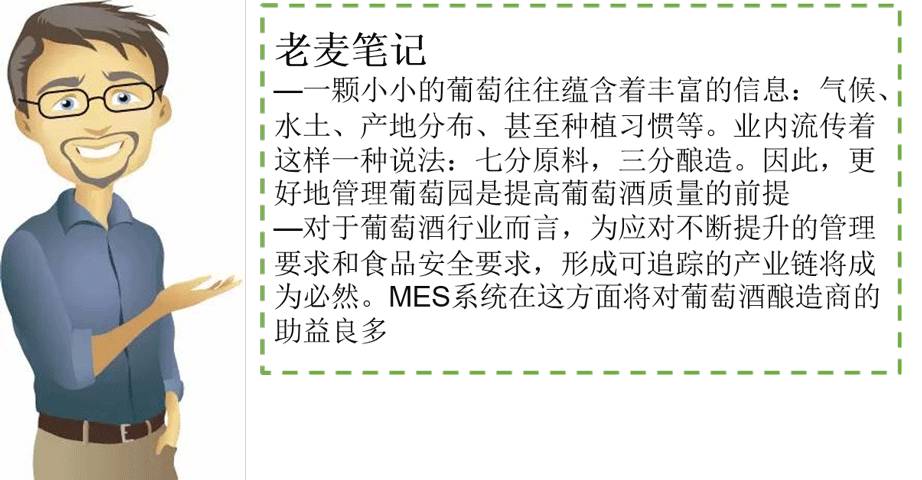 “传统工艺中,原料的品质和酿酒师的技艺决定了葡萄酒的最终质量。”Z公司烟台酒厂的总酿酒师说道。“但现在,借助MES的数字化技术,我们实现了整体生产工艺管理的标准化。”