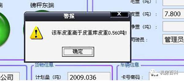 防止车辆皮重作弊技术,车皮吨位超出正常范围值时,系统自动报警并不予过磅。